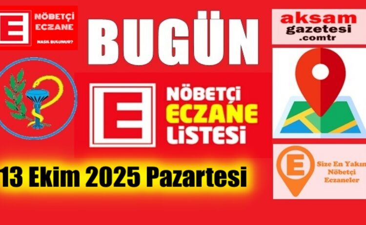Bugünün Nöbetçi Eczaneler listesi 13 Ekim 2025 Pazartesi