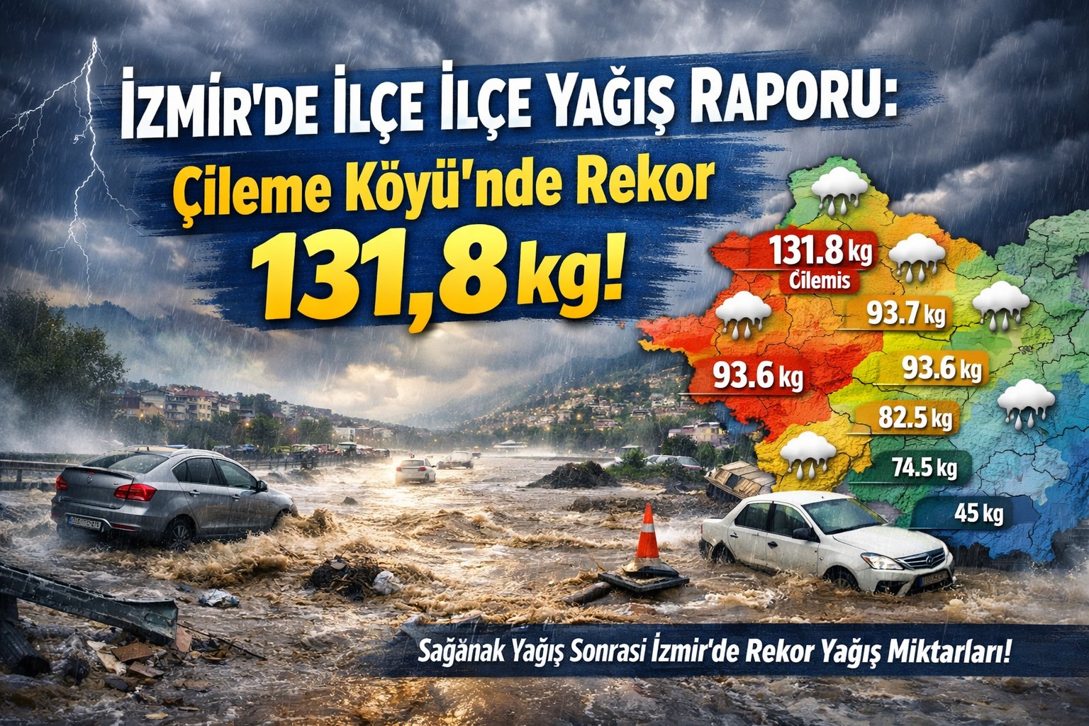 İlçeler arasında en yüksek yağış Menderes’e bağlı Çileme Köyü’nde metrekareye 131,8 kg olarak ölçüldü. Bu değer, son yılların en çarpıcı yağış verisi olarak kayıtlara geçti. Bu yoğun yağış, tarım arazilerinde su birikintilerine ve yerel taşkın riskine neden oldu.