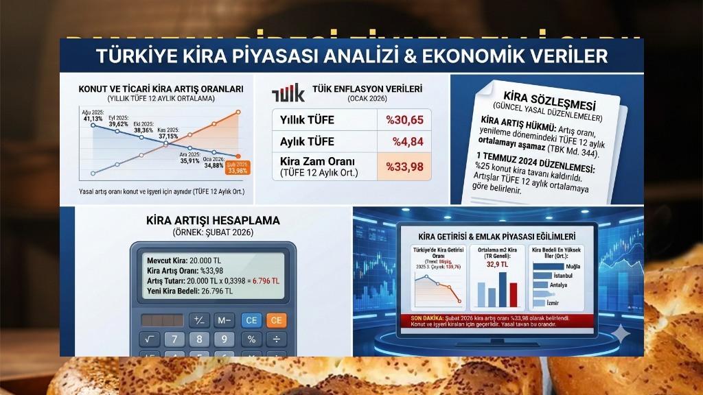 Türkiye’de milyonlarca kiracı ve ev sahibi için kritik önemdeki Şubat 2026 kira artış oranları netleşti. Türkiye İstatistik Kurumu’nun (TÜİK) Ocak ayı enflasyon verilerine göre, konut ve ticari işyeri kira zam tavanı “yıllık 12 aylık TÜFE ortalamasına göre” %33,98 olarak belirlendi. Bu oran, sözleşmesini Şubat 2026’da yenileyecek kiracılar için yasal üst sınırı ifade ediyor.